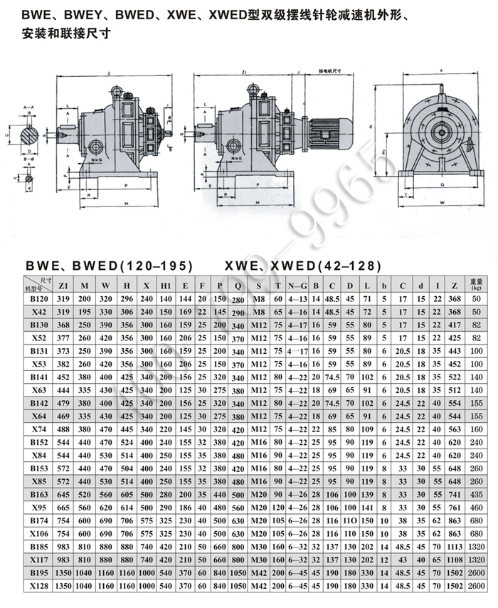 2、擺線針輪減速機的輸出軸不能承受軸向力,輸入軸的轉(zhuǎn)速額定轉(zhuǎn)數(shù)為1500轉(zhuǎn)/分,在輸入功率大于18.5千瓦時建議采用960轉(zhuǎn)/分的6極電機配套使用。