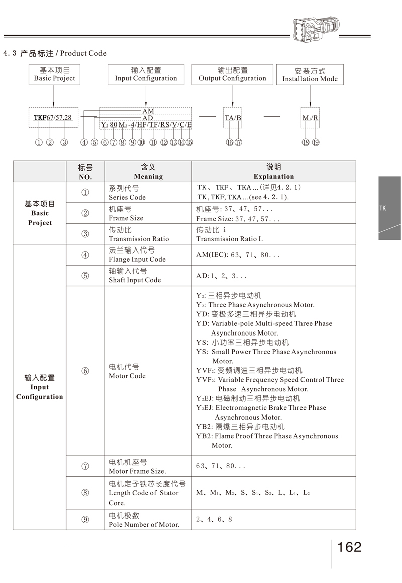 結(jié)構(gòu)形式: K-軸伸式、底腳安裝 KA-軸裝式聯(lián)接 KF-軸伸式、法蘭安裝 KAF-軸裝式、法蘭安裝